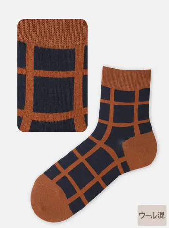 プレーンデザインのウール混のウィンドウペイン柄のショートソックス。