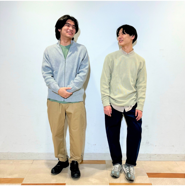 新商品の『洗える畦編みフルジップカーディガン』と『洗える畦編みクルーネックセーター』を使ってコーディネートを組んでみました。